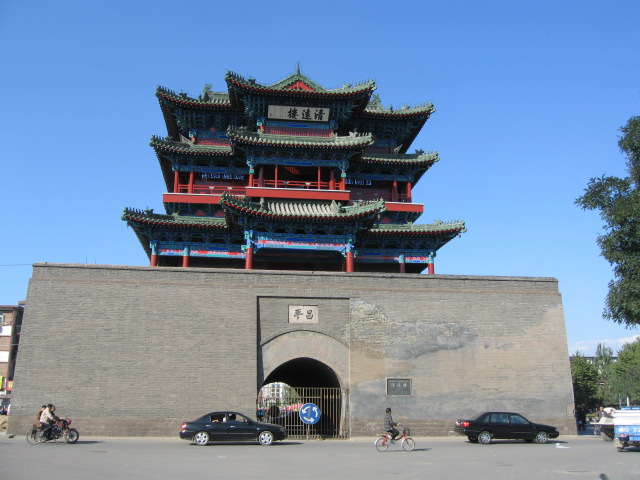 圖片說(shuō)明:清遠(yuǎn)樓又名鐘樓,位于古城宣化正中。始建于明成化十八年(1482年), 是一座重搪多角十字脊歇山頂?shù)母叽蠼ㄖEc城內(nèi)鎮(zhèn)朔樓、拱極樓成一軸線。券洞內(nèi)500 年前的鐵輪車轍明顯可見(jiàn)。樓內(nèi)懸有明嘉靖十八年公元年鑄造的宣府鎮(zhèn)城鐘一口,高5米,口徑7米,重約萬(wàn)斤,用四根通天柱架于樓體上層中央。鐘聲悠揚(yáng)宏亮,可傳40余里,頗負(fù)盛名。該樓造型別致,結(jié)構(gòu)精巧嚴(yán)謹(jǐn)。可與武漢黃鶴樓媲美,在國(guó)內(nèi)同屬罕見(jiàn),素有“第二黃鶴樓” 之稱。