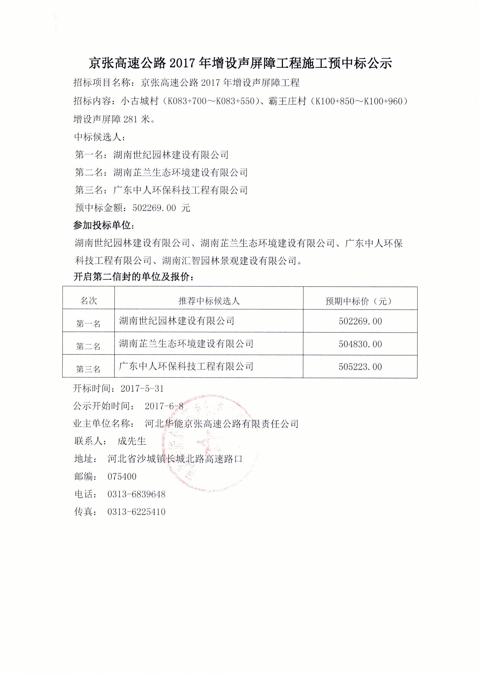 2017年增設(shè)聲屏障工程預(yù)中標(biāo)公示