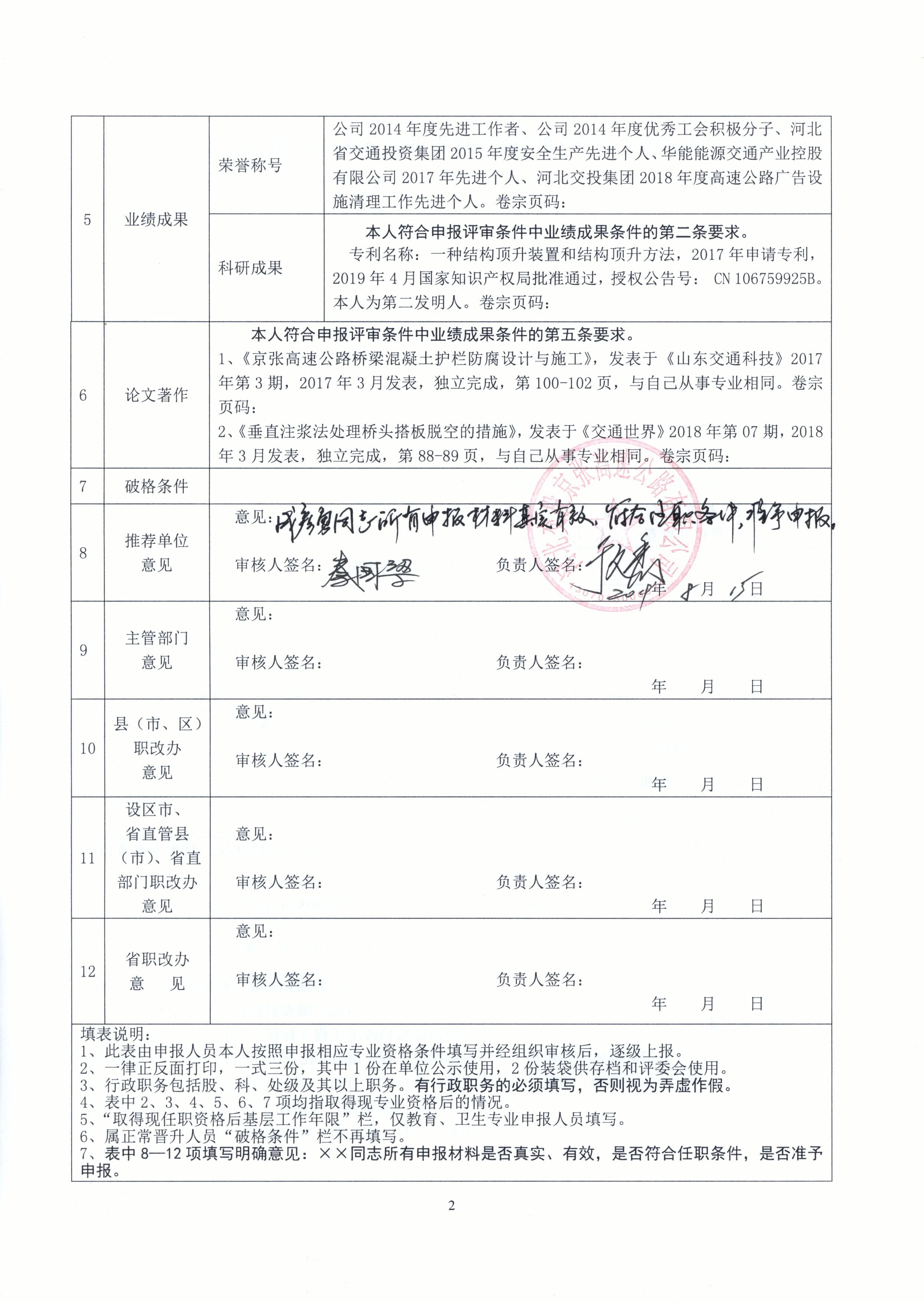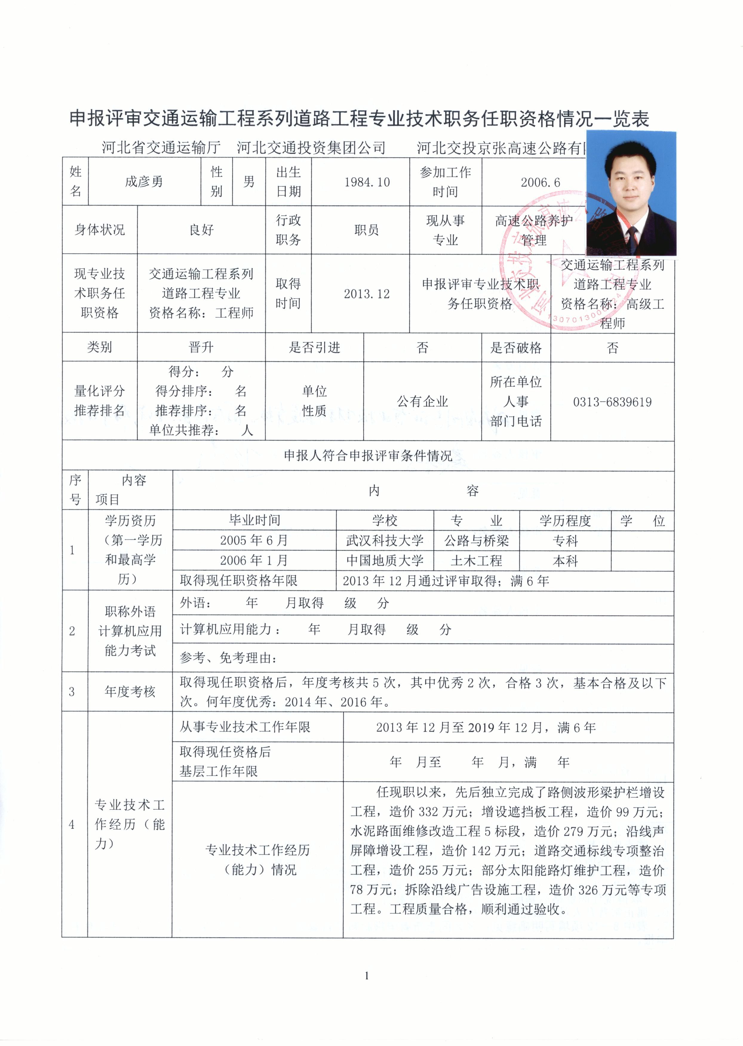 河北交投京張高速公路有限公司2019年度職稱申報人員基本情況公示