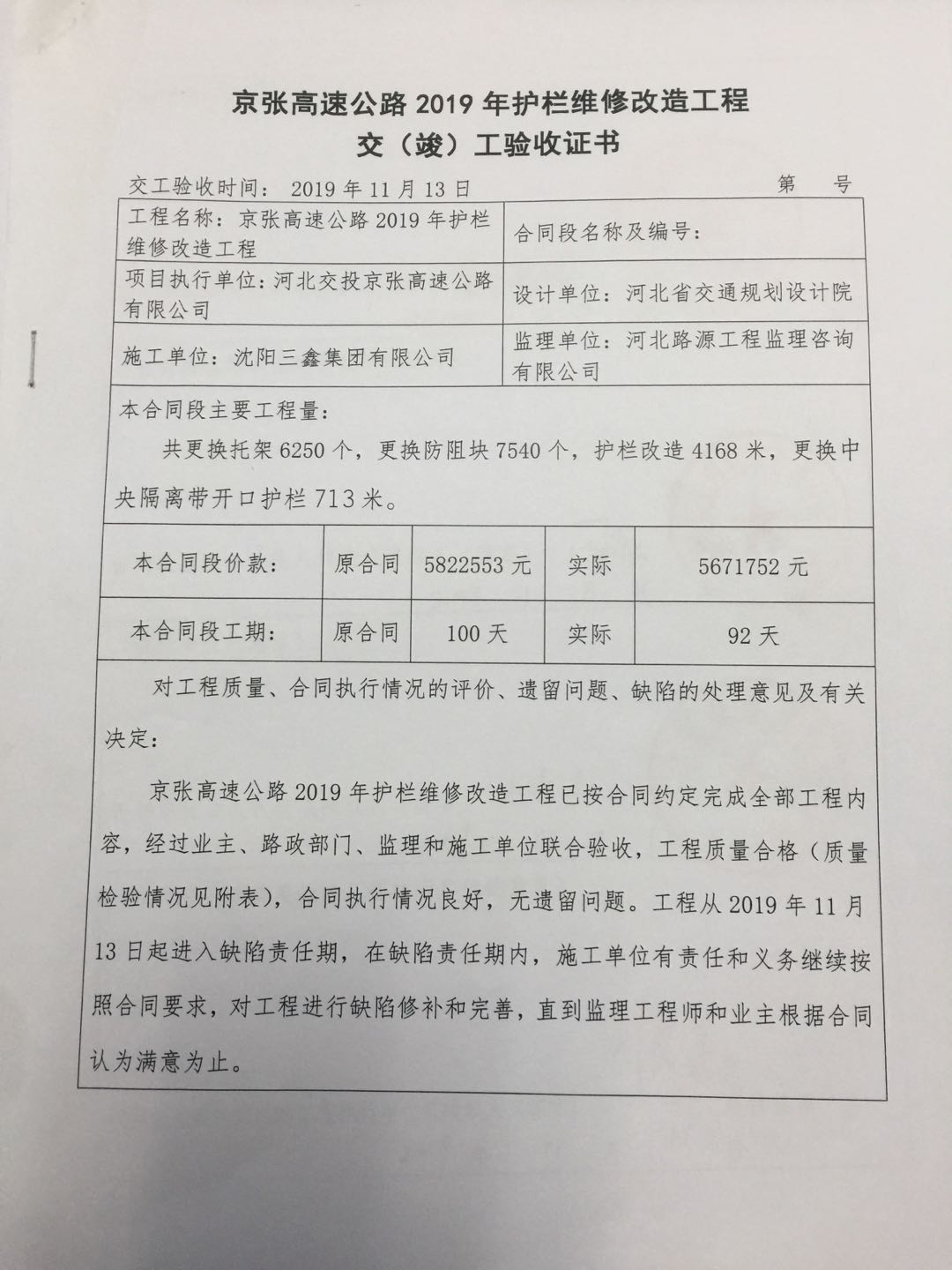 京張高速公路2019年護(hù)欄維修改造工程